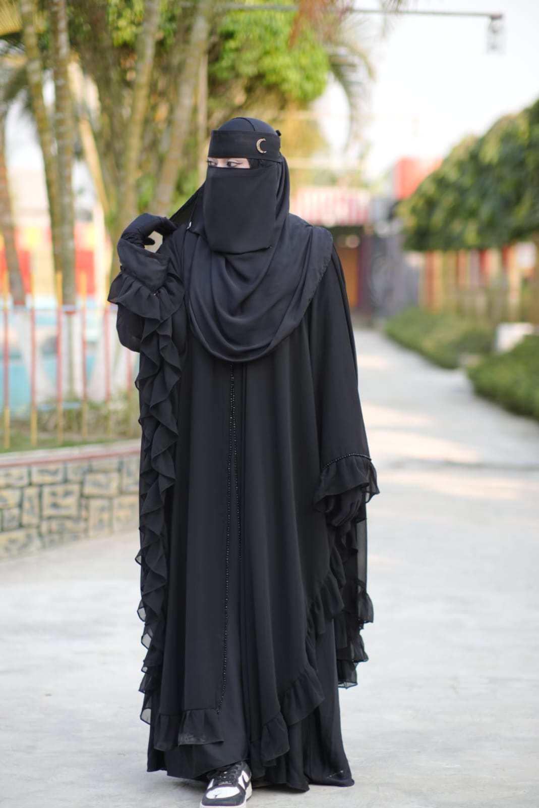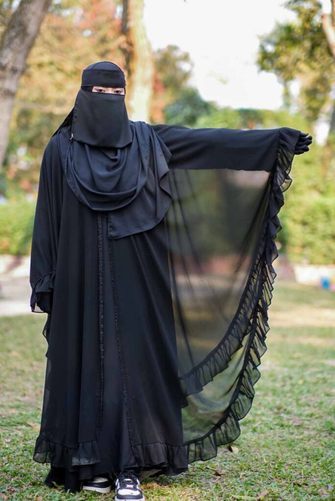 কালো এলিগ্যান্ট ফ্লো আবায়া – প্রিমিয়াম কালেকশন।